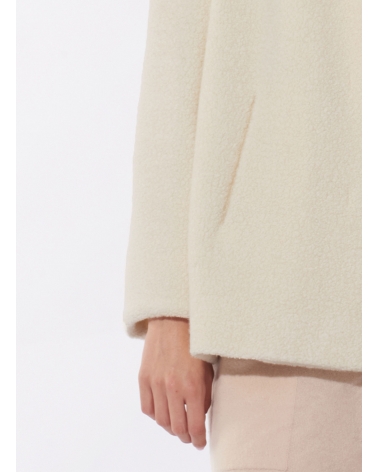 Parka corto bianco in lana con pettorina in nylon staccabile