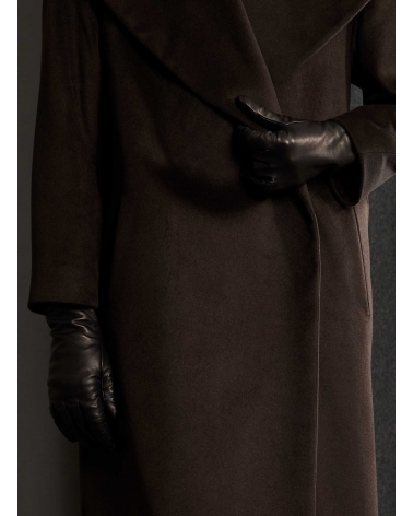 Cappotto marrone con collo a maxi scialle in pura seta