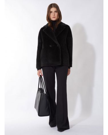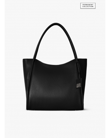 Black genuine leather shopper bag