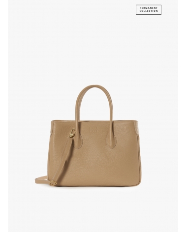 Light camel genuine leather tote bag