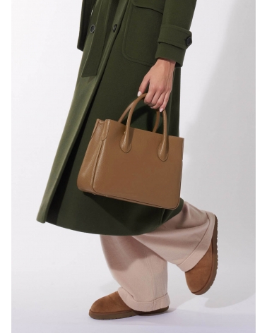 Small tobacco color genuine leather tote bag