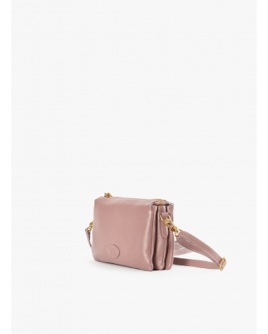 Pink genuine leather crossbody bag with three compartments