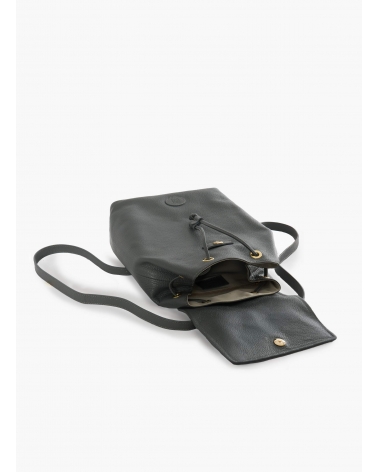 Grey genuine leather backpack with gusset and logo