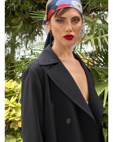 Maxi double breasted blue trench coat in rainproof technical fabric