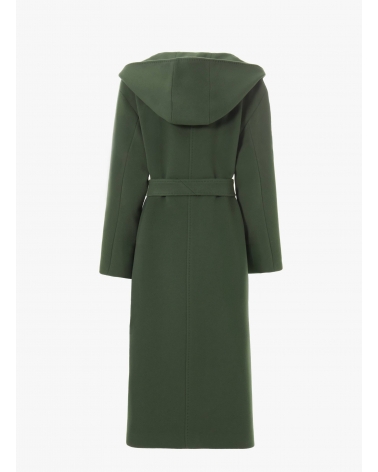 Maxi belted green wool and cashmere coat with hood