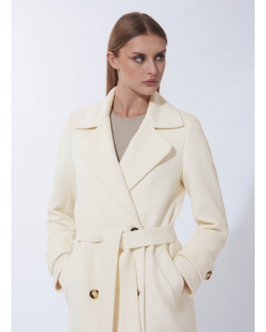 Maxi white pure wool trench with belt
