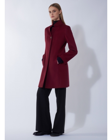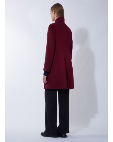 Inverted notch collar burgundy coat crafted with pure zibeline wool