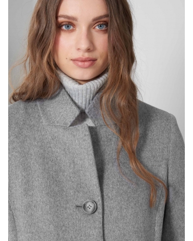 Inverted notch collar light grey coat crafted with pure wool