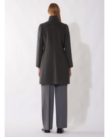 Grey pure wool coat with detachable nylon bib