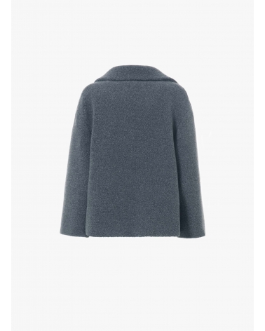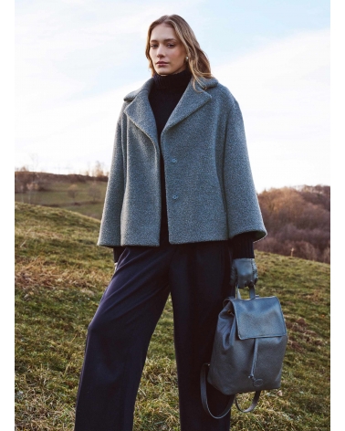 Short grey wool coat with maxi notch collar