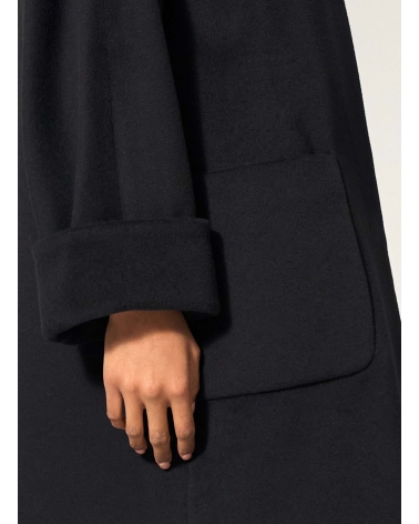 Oversized black pure wool coat with shirt collar