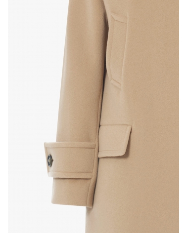 Hooded light camel wool and cashmere parka with double pockets