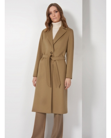 Belted fitted camel pure cashmere coat