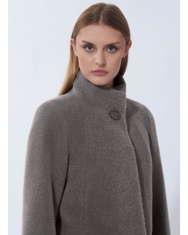 Flared dark taupe wool and alpaca coat