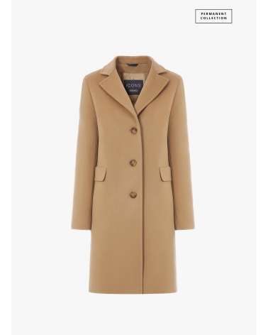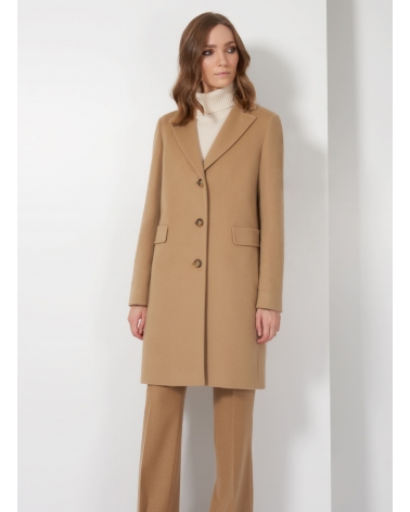 Straight light camel wool and cashmere coat with masculine cut