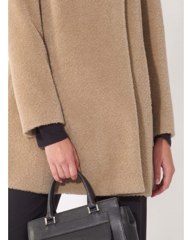 Short flared dark beige wool and alpaca coat with crossover collar