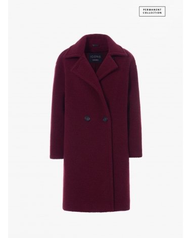 Double breasted burgundy wool coat with notch collar