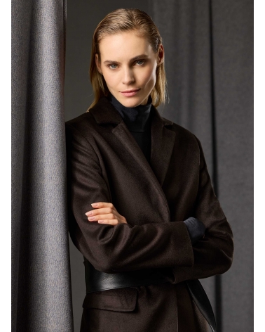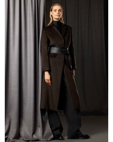Maxi brown pure silk coat with masculine cut