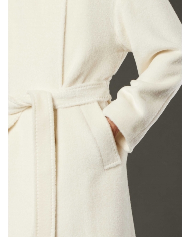 Белое пальто макси с поясом и капюшоном из альпаки и шерсти