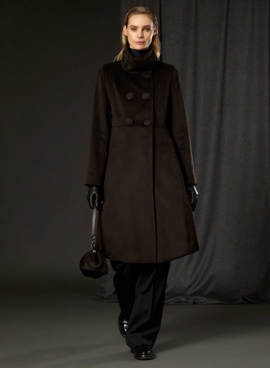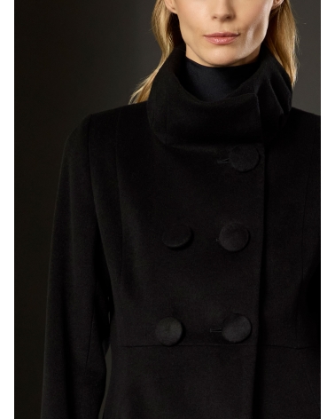 Черное длинное пальто редингот с высоким драпированным воротником из чистого шелка