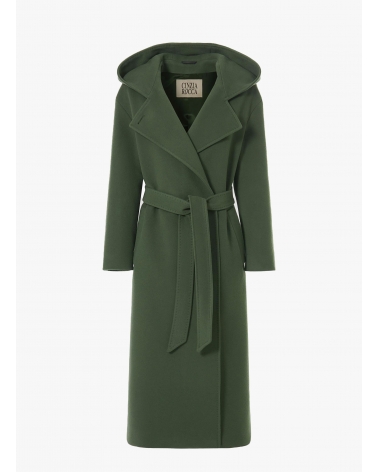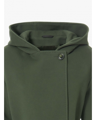 Военно-зеленое макси-пальто с поясом и капюшоном из шерсти и кашемира