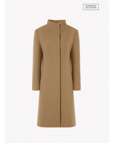 Пальто цвета кэмeл из кашемира с высоким воротником