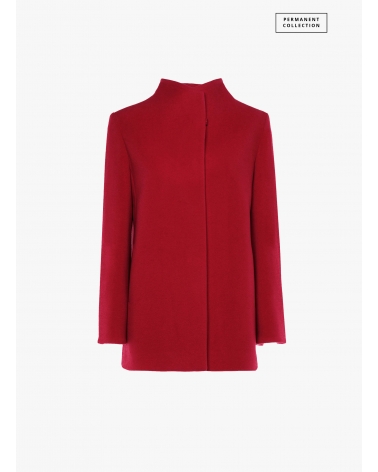 Короткое красное пальто из шерсти и кашемира с высоким воротником