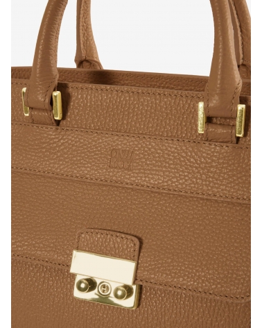 Tobacco color genuine leather structured bag with metal closure