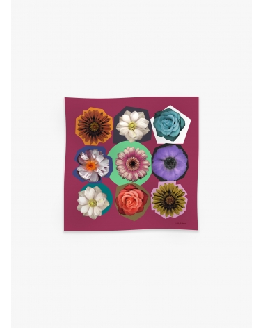 Pink square pure silk twill scarf with floral pattern