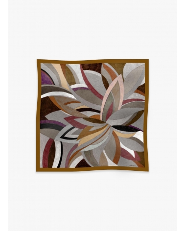 Maxi tobacco color wool and silk scarf with stylized pattern