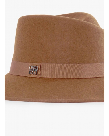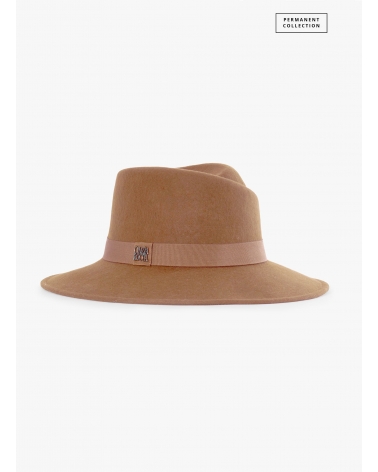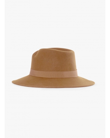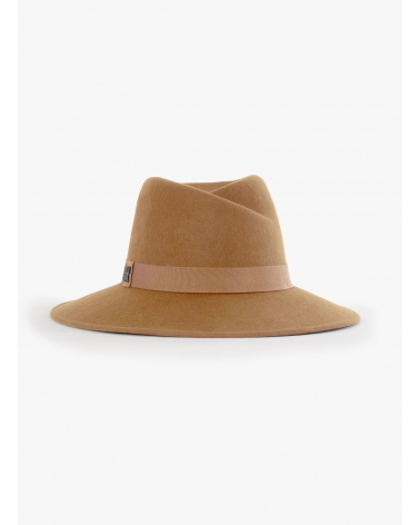 Camel wool felt asymmetric fedora hat