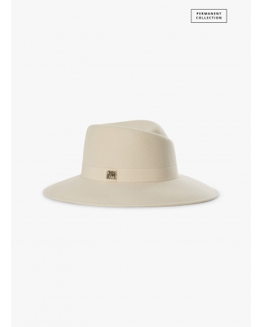 White wool felt asymmetric fedora hat