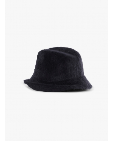 Blue wool asymmetric hat with fur effect