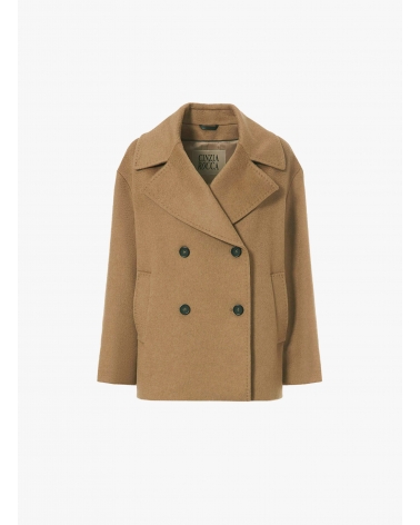 Short double breasted pure camel wool camel coat with maxi notch collar