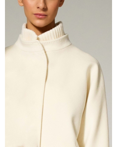Short oversized white pure wool coat with knitted details