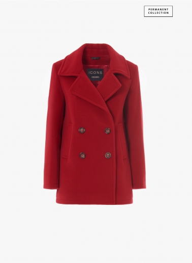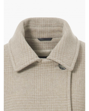 Beige double breasted peacoat with micro houndstooth pattern