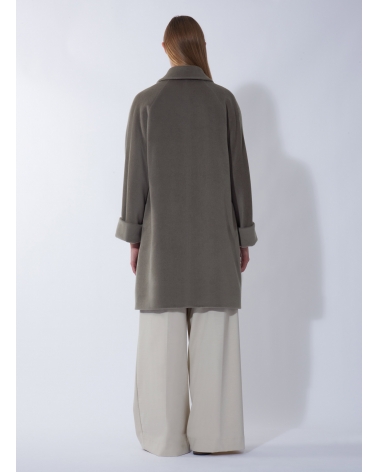 Oversized dark taupe pure wool coat with shirt collar