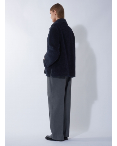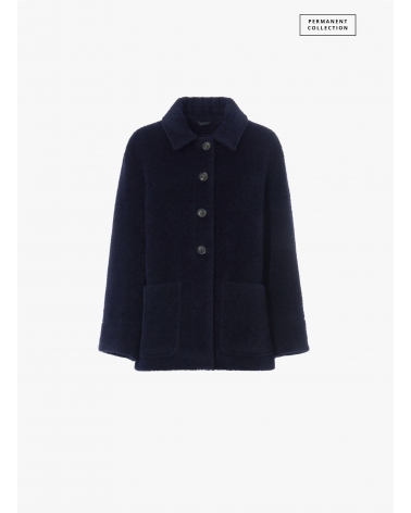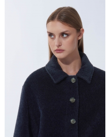 Short blue wool and alpaca coat with shirt collar and patch pockets