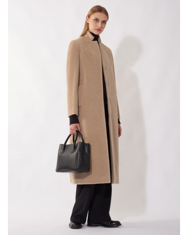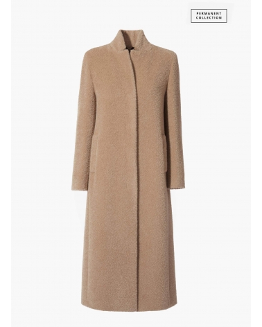 Maxi dark beige wool and alpaca coat with inverted notch collar