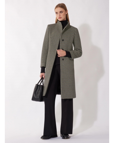 Black pure wool houndstooth coat with high stand up collar