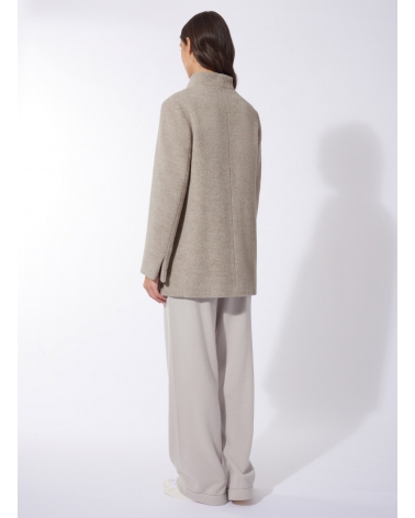 Short beige wool and alpaca coat with high stand up collar
