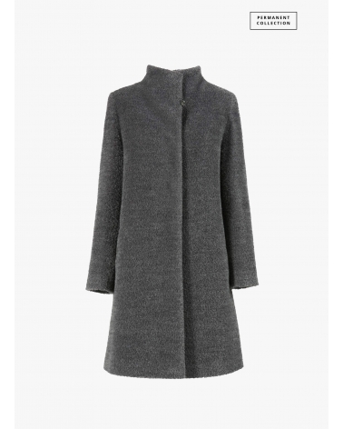 Flared grey wool and alpaca coat with high stand collar