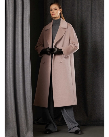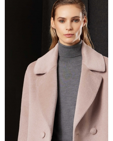Long double breasted pink coat in alpaca and wool