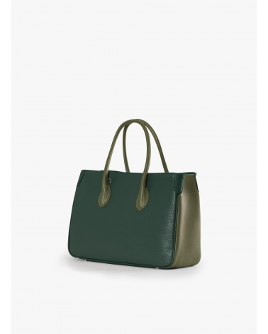 Two-tone military green genuine leather tote bag