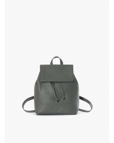 Grey genuine leather backpack with gusset and logo