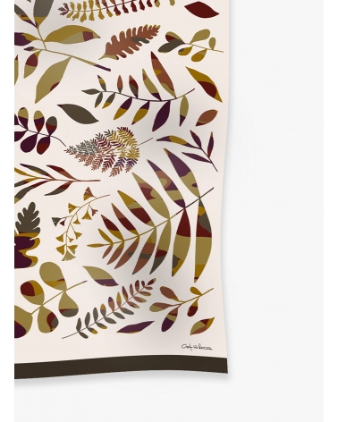 Beige wool scarf with stylized leaves