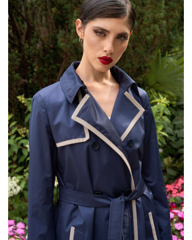 Maxi blue polycotton trench coat