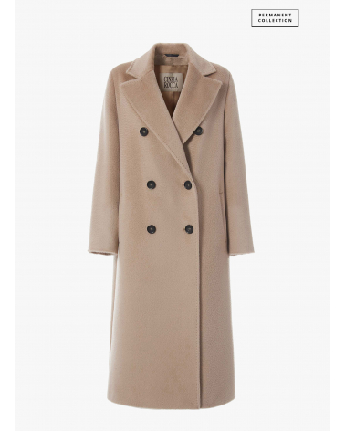 Long double breasted 6 buttons beige alpaca and wool coat