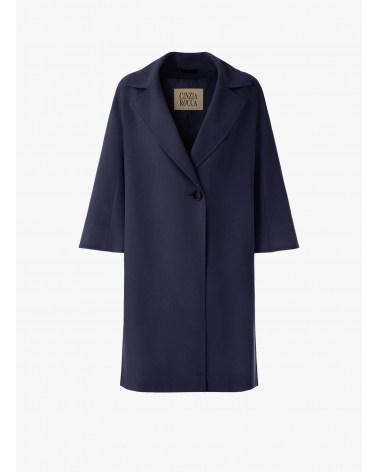 Assymetrical blue overcoat in comfort wool