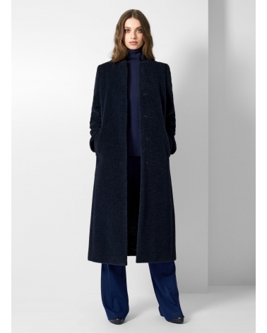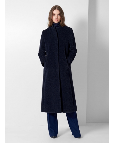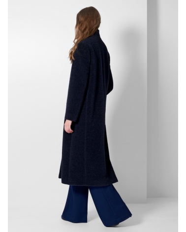 Maxi blue wool and alpaca coat with inverted notch collar
